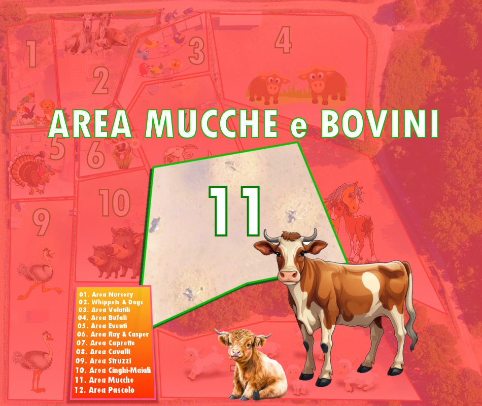 Area 11 – dove le nostre mucche, vitelli e bovini di diverso tipo pascolano, mangiano e riposano beatamente in attesa di un nuovo pasto e nuovi amici.
